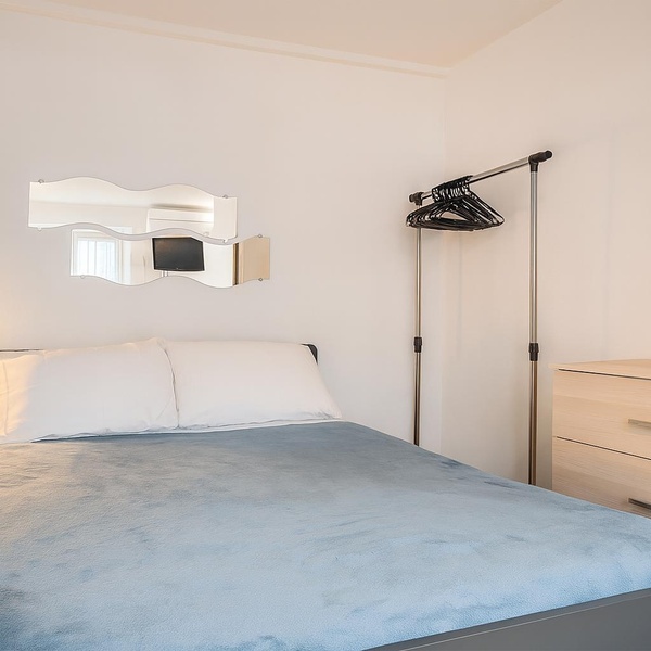 Chambre avec lit double mémoire de forme et canapé-lit dans le salon.